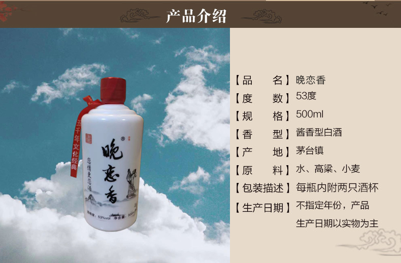 5. 真正的酱香老酒:“晚恋香”酒只做真正的酱香老酒,这是我们对其品质的坚持,将稀缺的酱香老酒提供给酱香老酒爱好者和收藏者饮鉴。